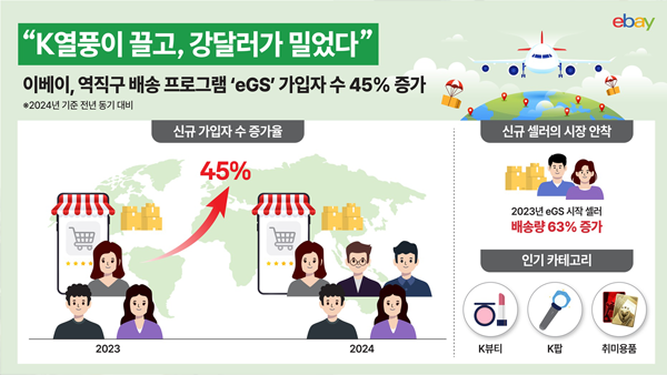 글로벌 전자상거래 플랫폼 이베이가 2024년 한 해 동안 이베이 해외 통합 배송 프로그램 ‘이베이 eGS' 이용 데이터를 분석한 결과, 역직구 시장에 진출하는 셀러들이 늘어난 것으로 조사됐다.