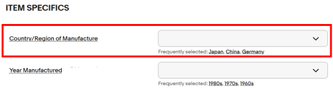 (1) HS CODE 및 원산지를 확인하여 리스팅의 Item specific - COO 란을 업데이트하세요